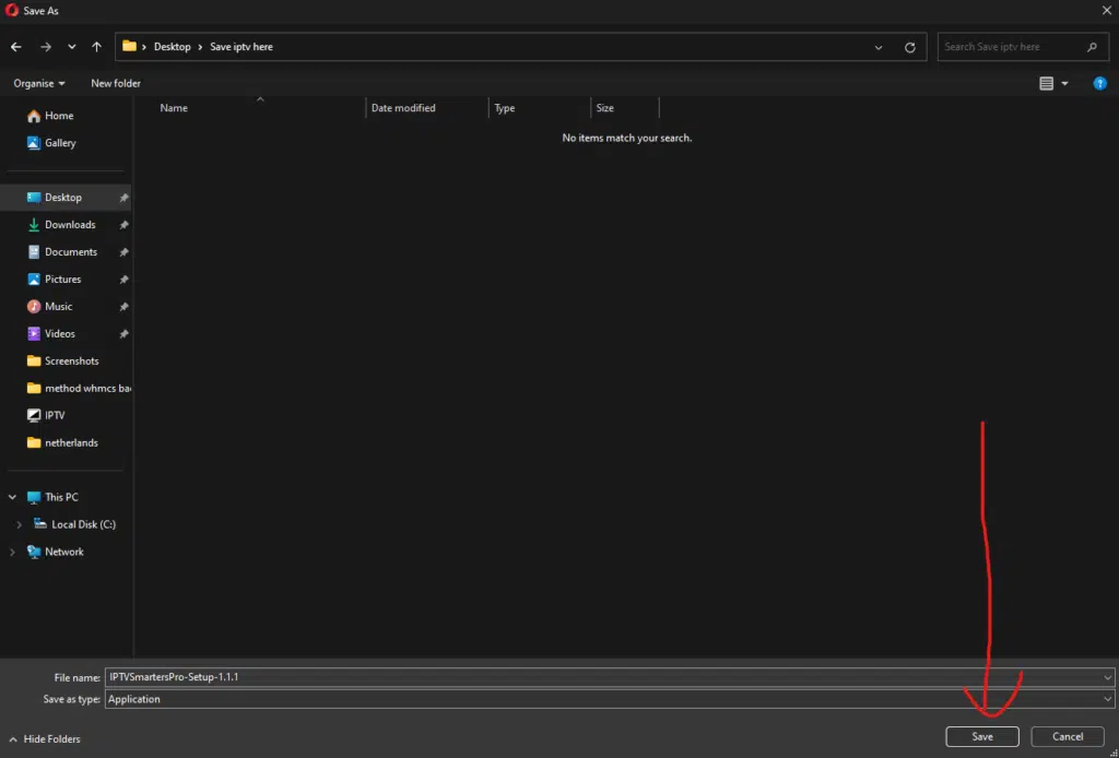 Wähle beim Download einen leicht zugänglichen Speicherort auf deinem PC – idealerweise einen neuen Ordner für IPTV.
